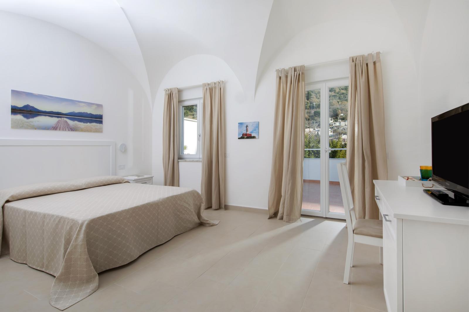 Guests of an old family house Villa Pollio has long been the home of one of the historic anacapresi families. The Pollio lived here all together, in the garden next to were bred animals for the family butcher’s shop, on the ground floor there was the workshop. On the terrace overlooking the town square women embroidered and chatted. Today the new generation has decided to open the doors of the house by transforming Villa Pollio into a cozy guest-house in the center of Anacapri. Five rooms named after the Pollio brothers: Gisa, Liberato, Clara, Ottavio and Michele. All renovated and furnished in 2017. To welcome guests the smile of Roberta and the sympathy of Fabio, ready to suggest the best itineraries, restaurants and beaches for a relaxing holiday in perfect "anacaprese" style. Everything at your fingertips The villa is located in Piazza Cerio, right in the center of Anacapri, close to all means of transport, shops, bars and restaurants. Two rooms have a private terrace, while the others can use a lovely shared terrace with views of the square. At guests' disposal there are mini-bars and kettles. Shops, restaurants and bars are all just a stone’s throw away (including the historic grocery store of Papa Liberato): you can move comfortably on foot and use the small local buses to reach the Piazzetta di Capri, the Grotta Azzurra, the lighthouse and the beaches. In short, everything you need for a "stress free" holiday!